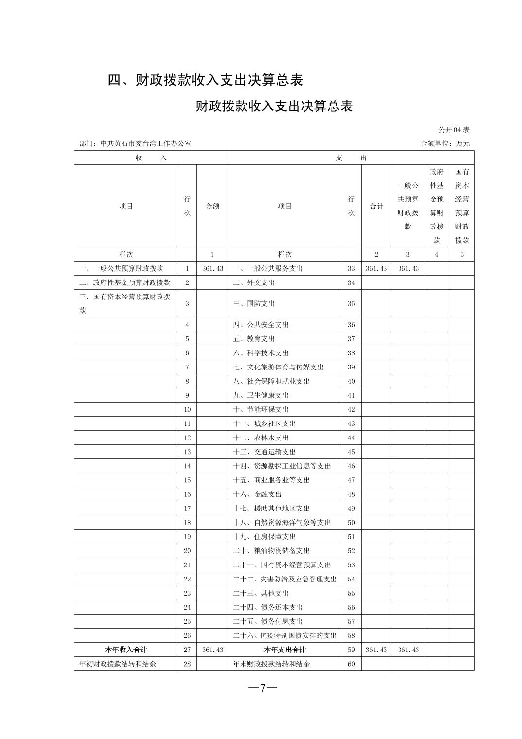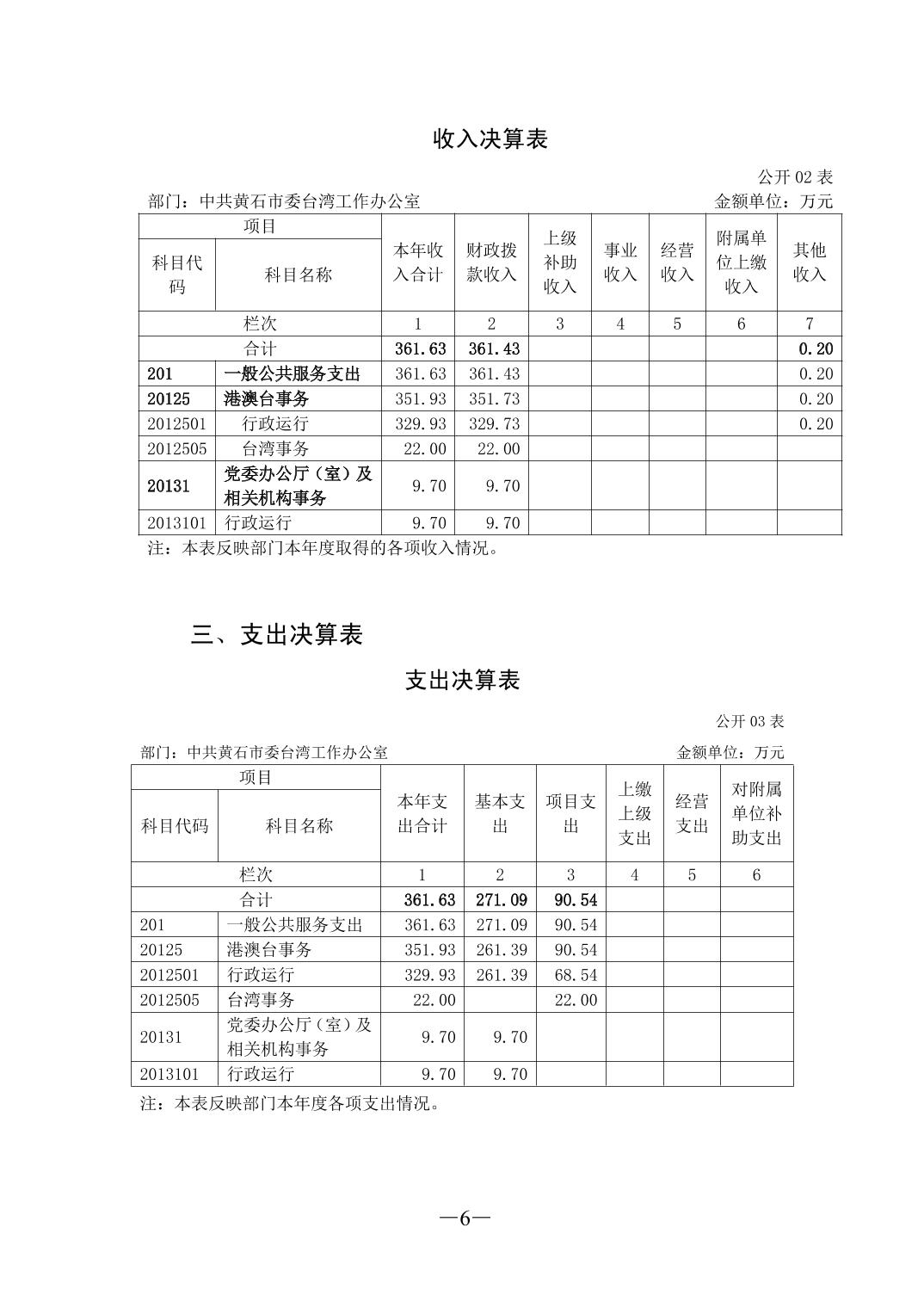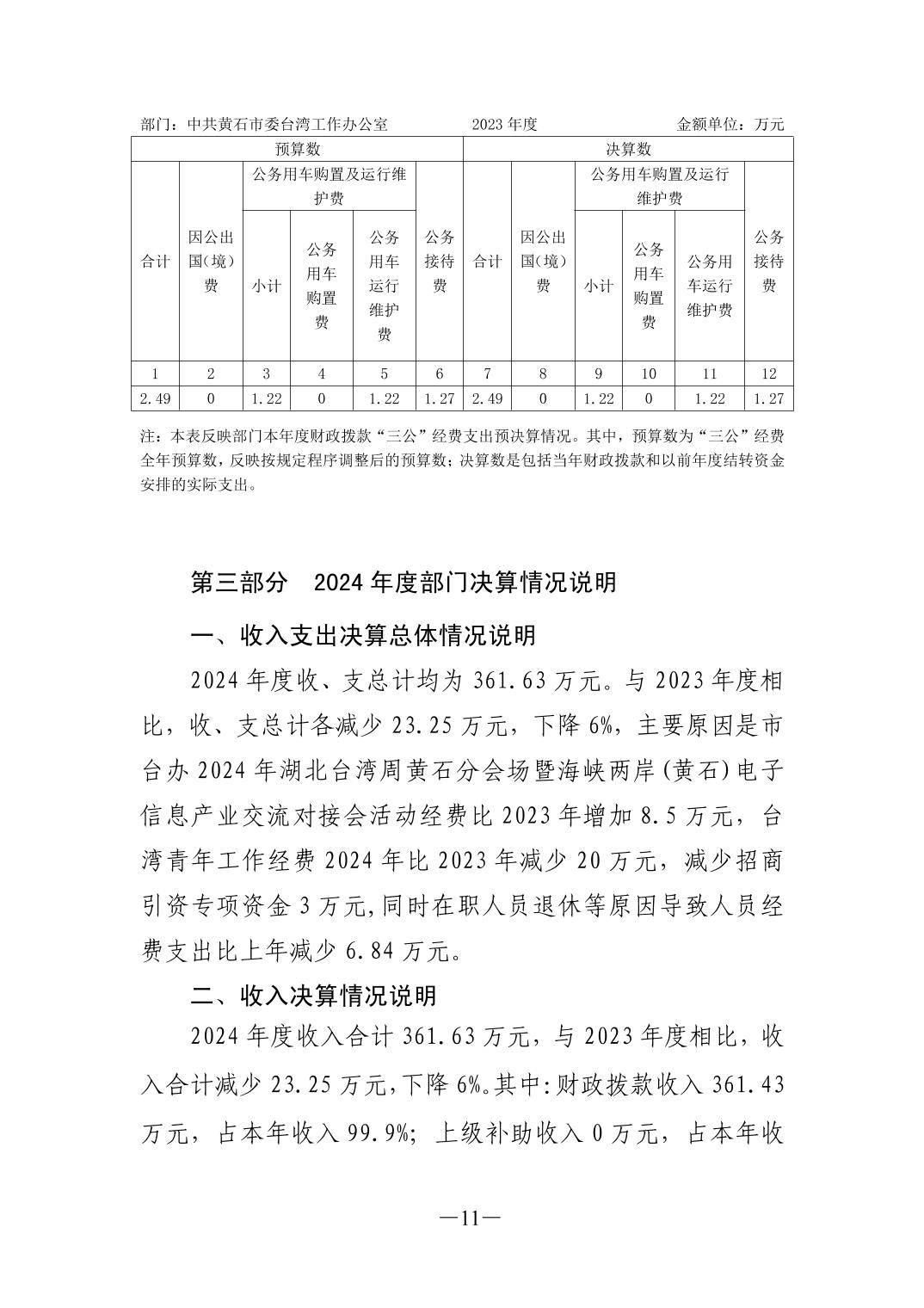 2024年度中共黄石市委台湾工作办公室部门决算公开说明