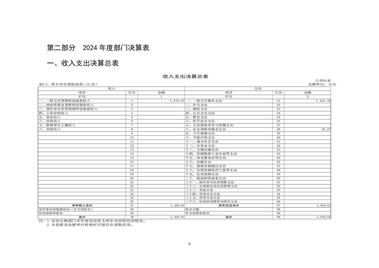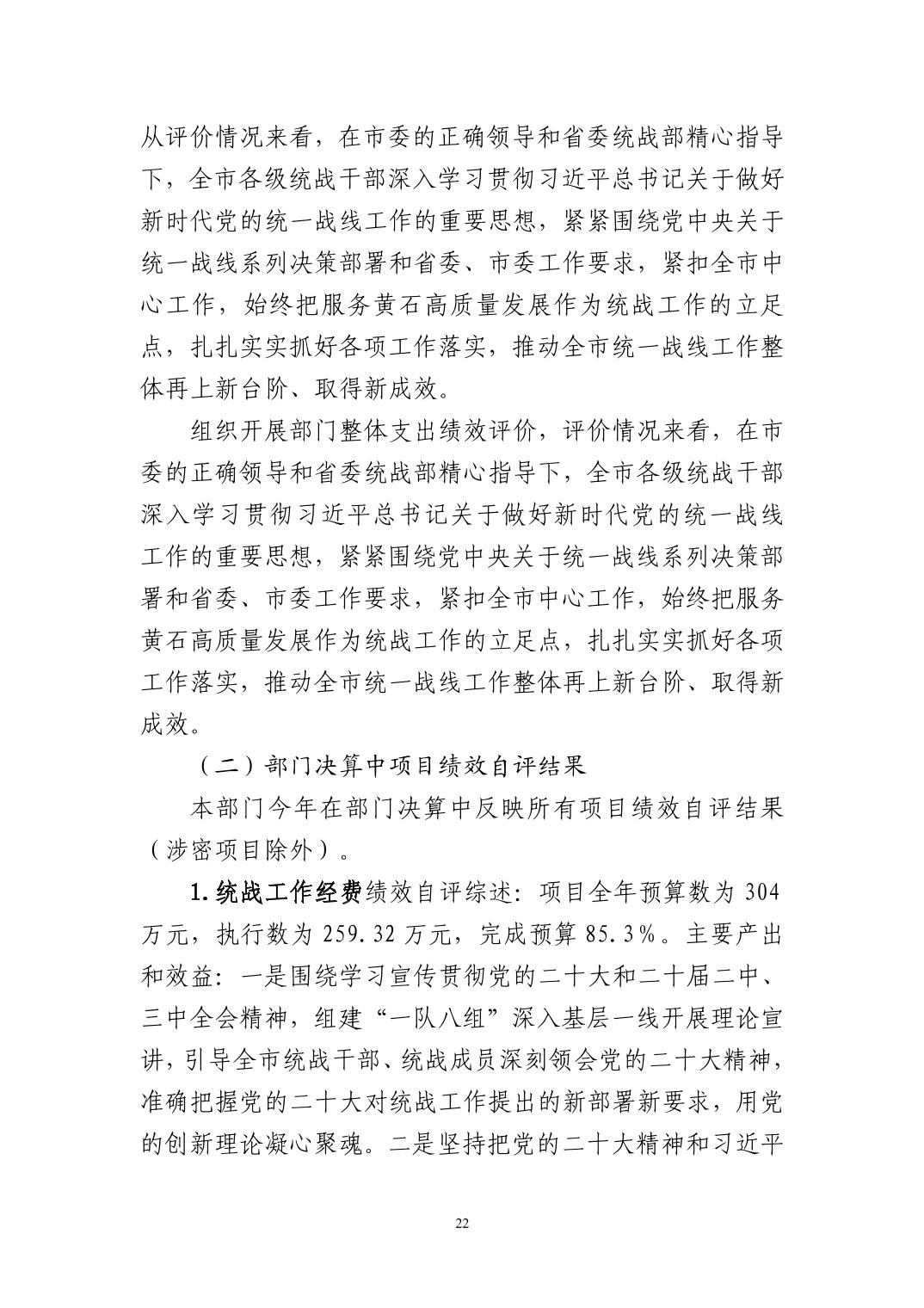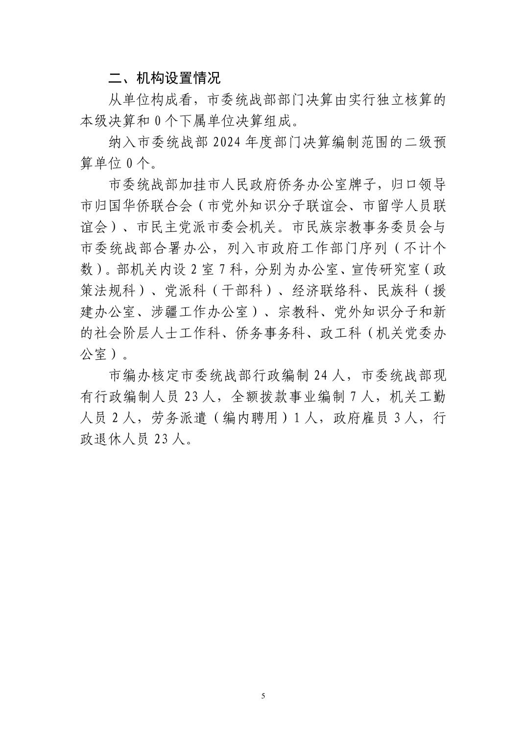 中共黄石市委统战部2024年度部门决算
