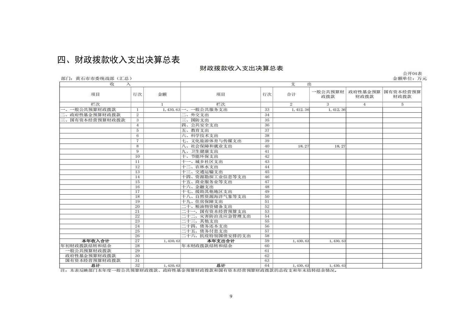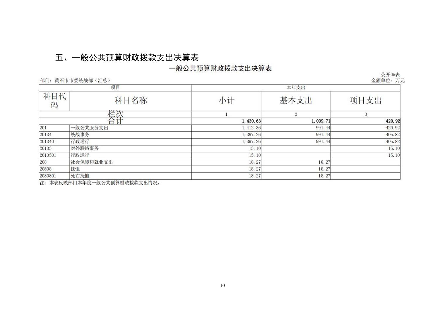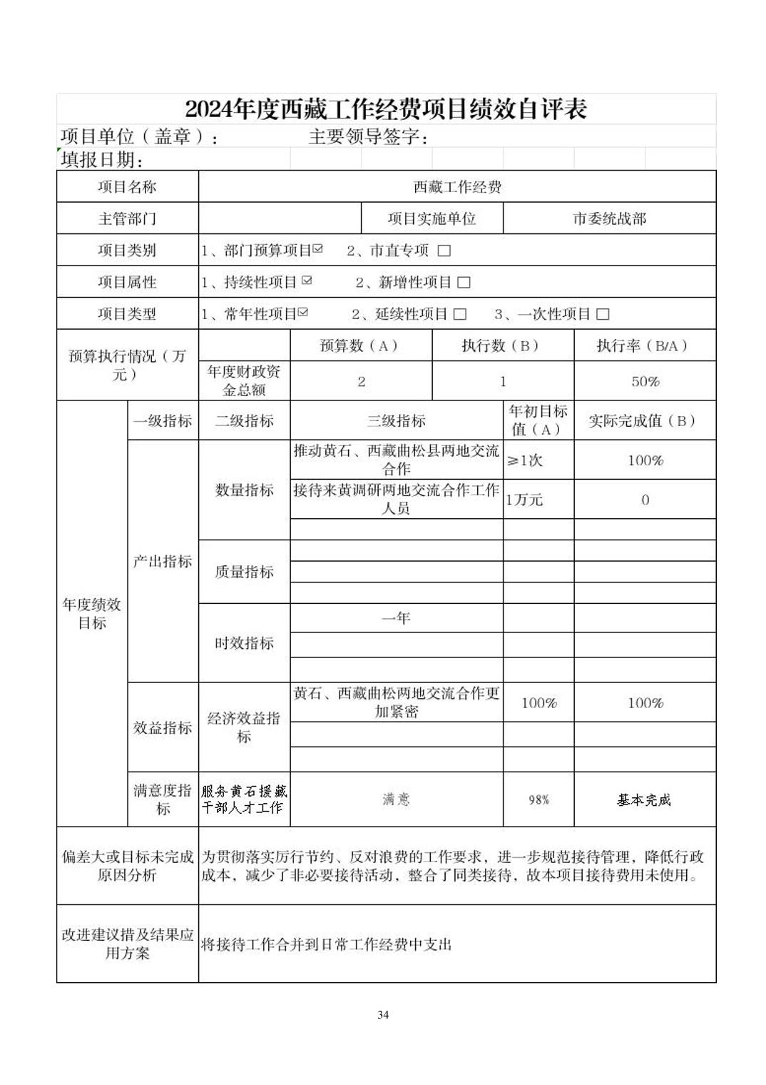 中共黄石市委统战部2024年度部门决算