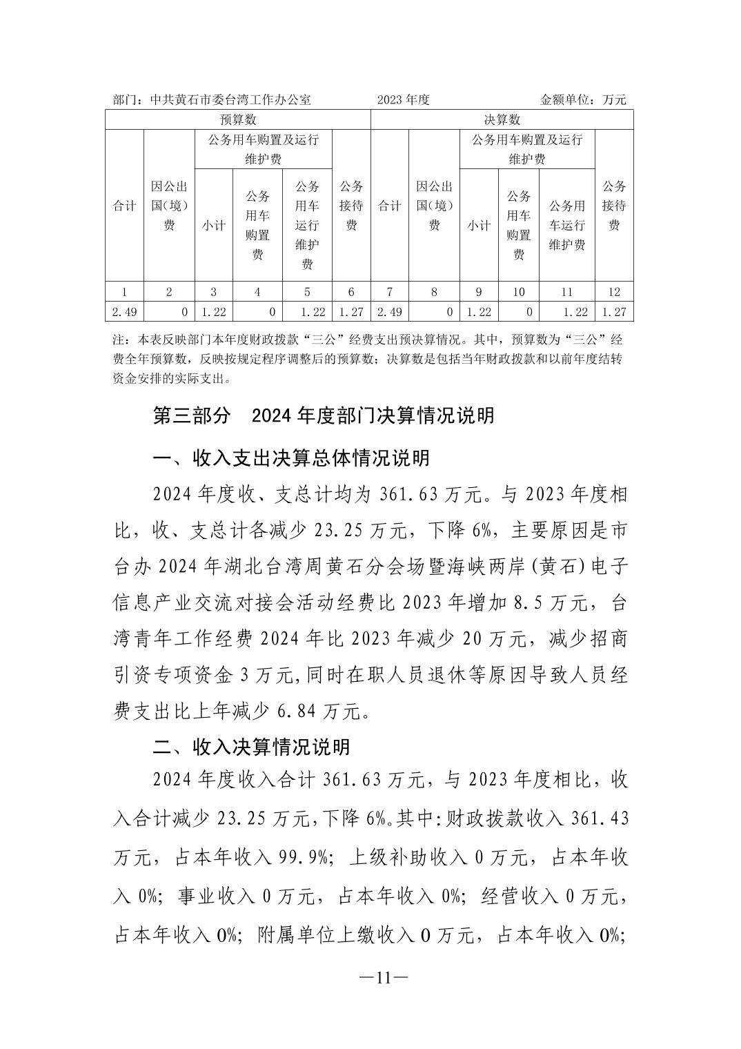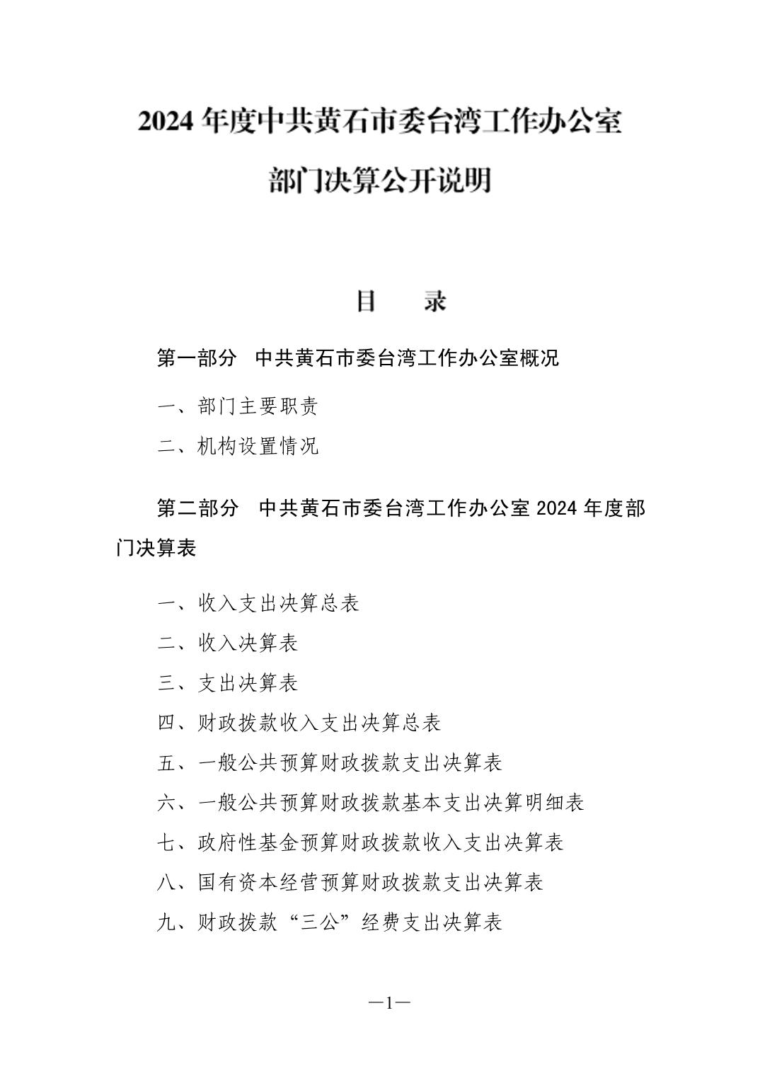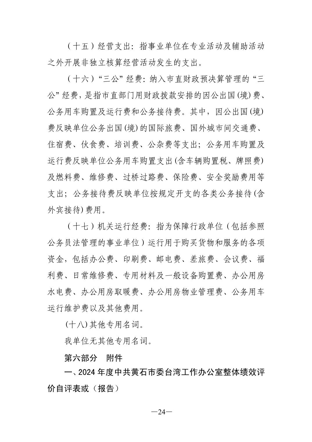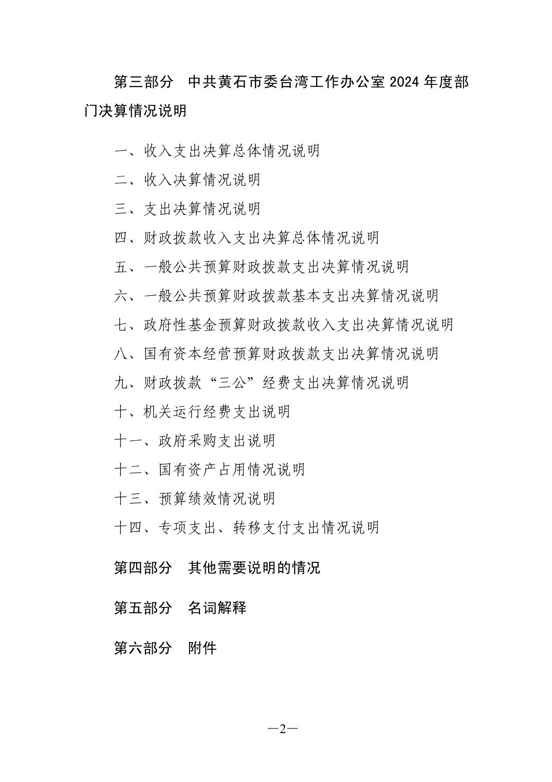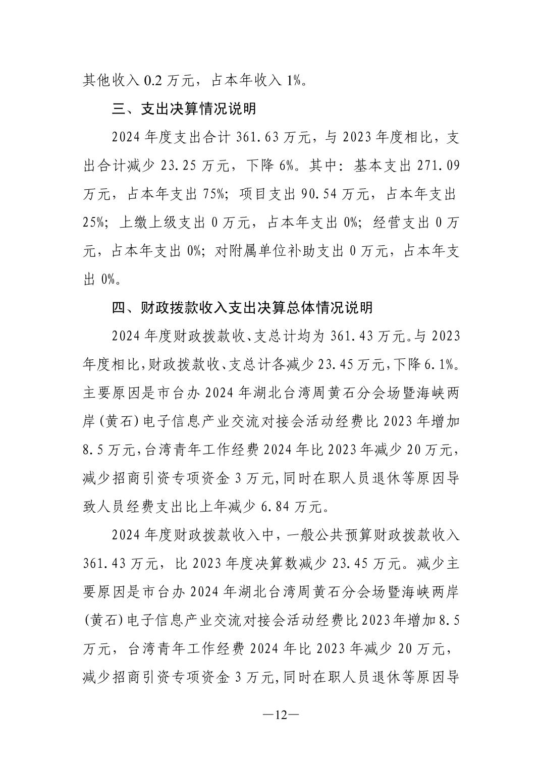 2024年度中共黄石市委台湾工作办公室决算公开说明