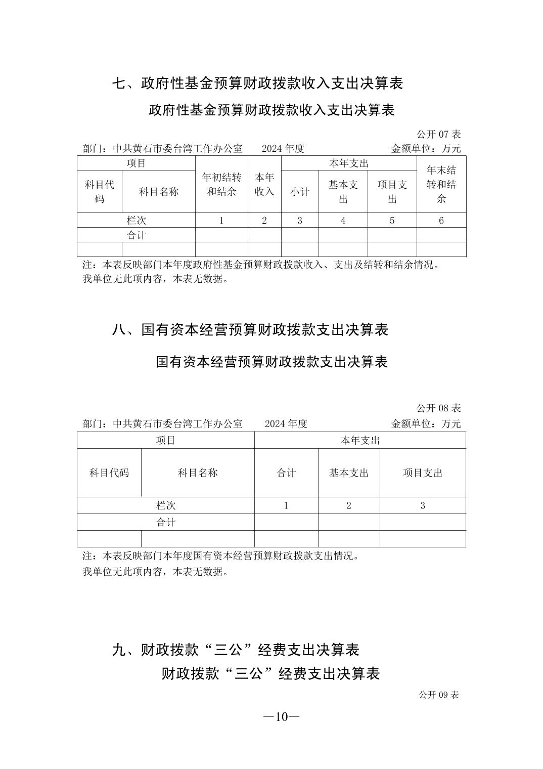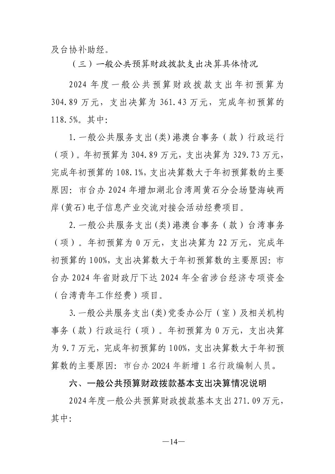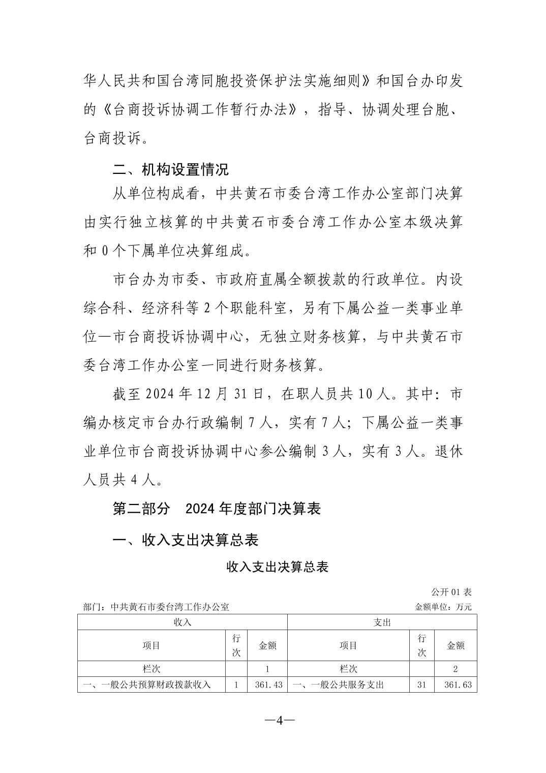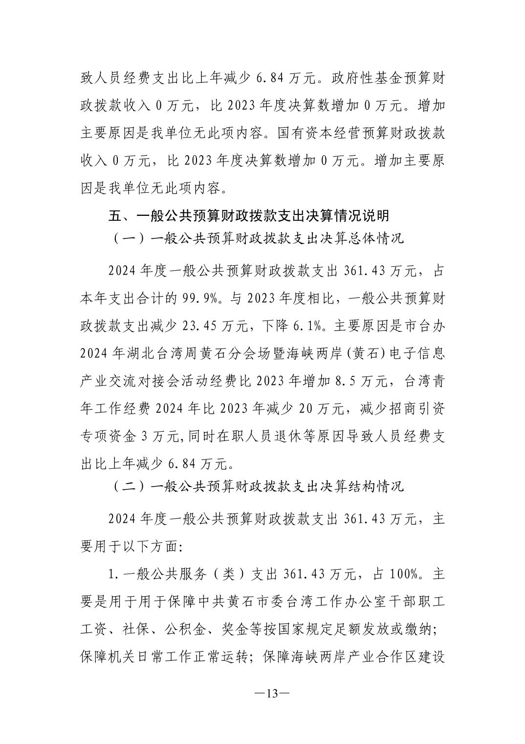 2024年度中共黄石市委台湾工作办公室决算公开说明