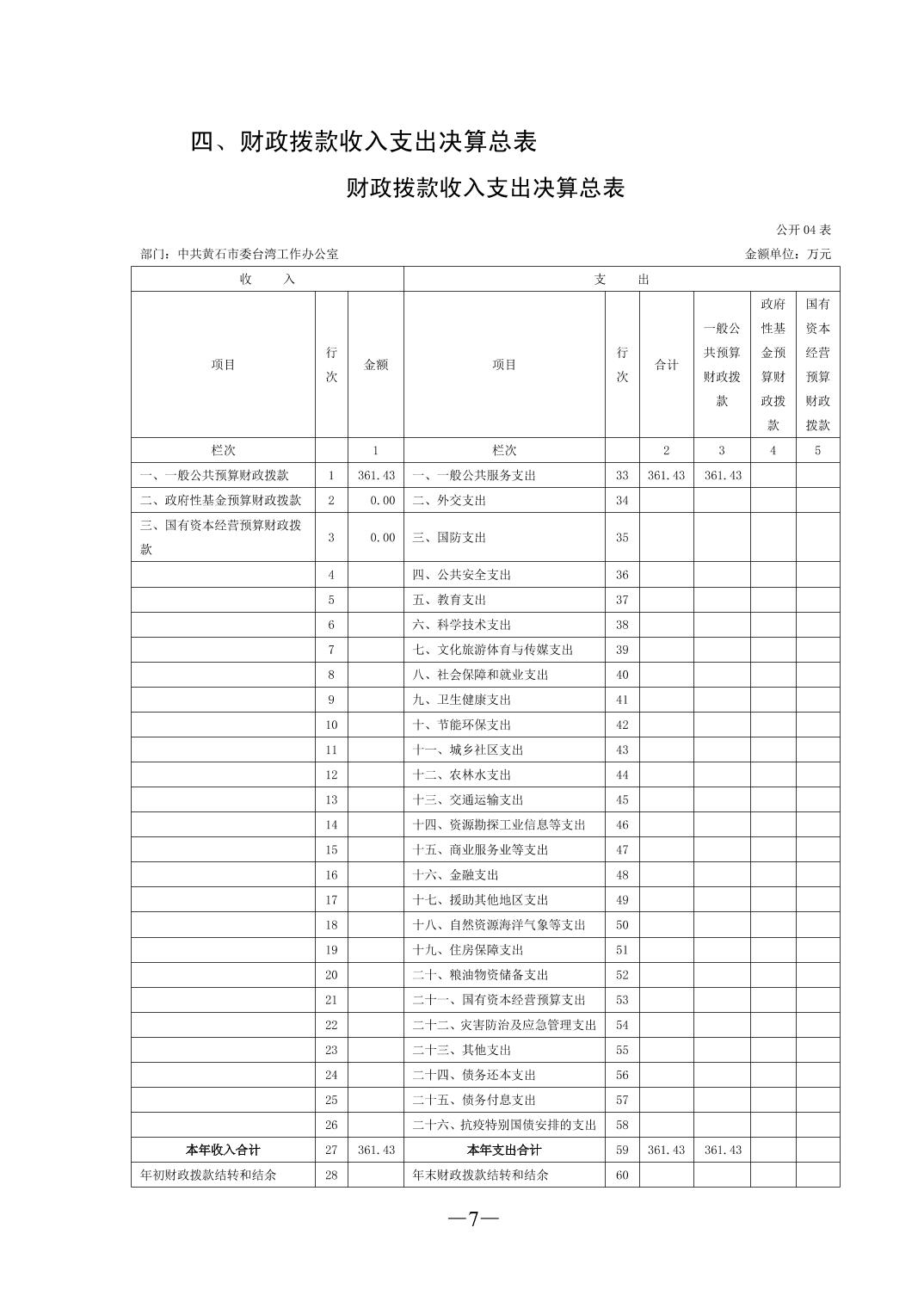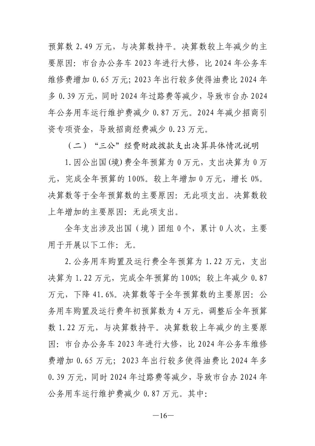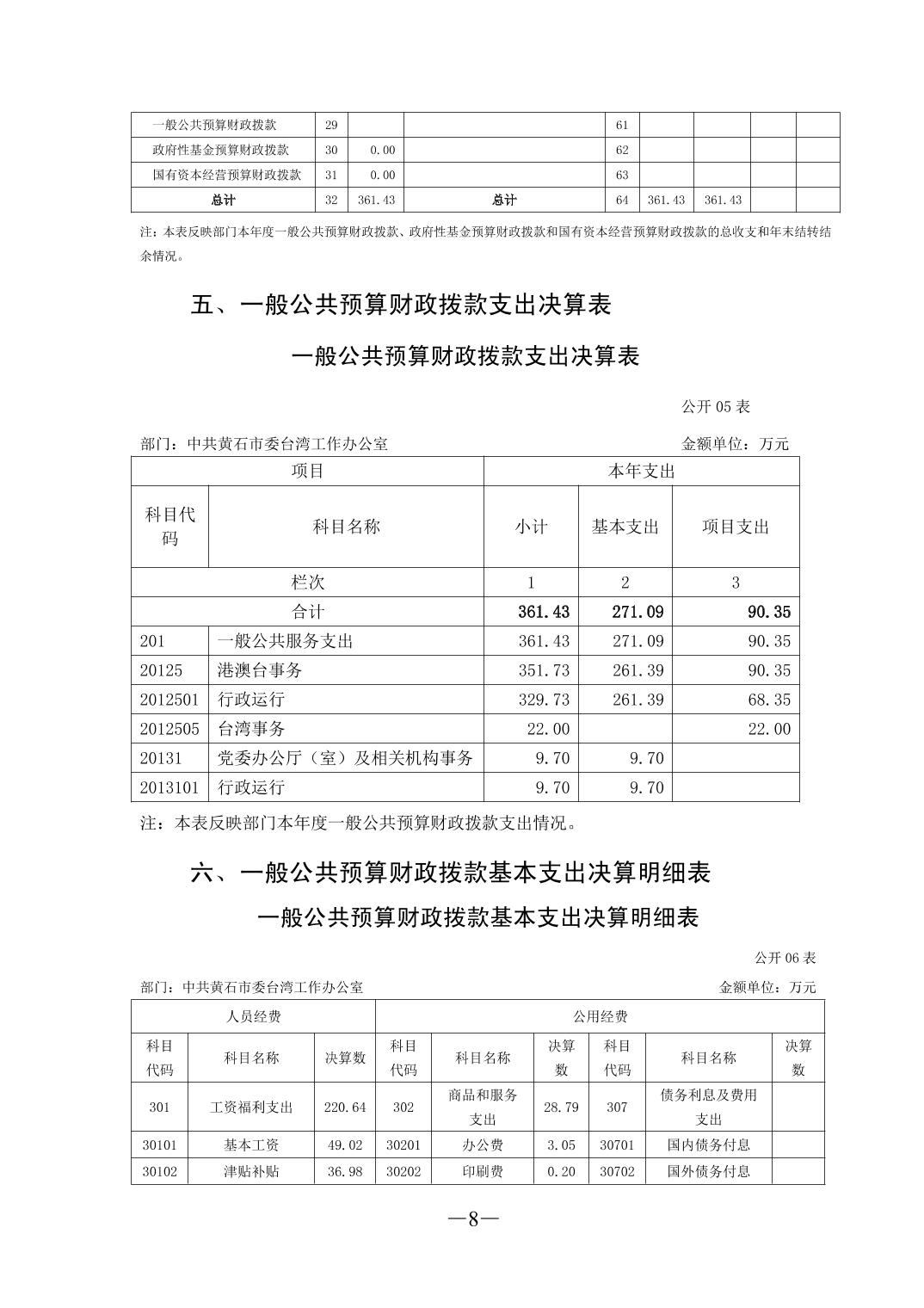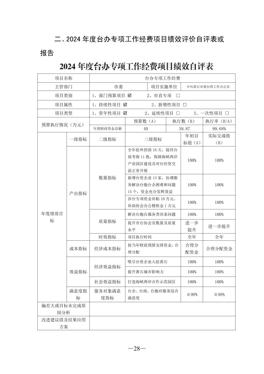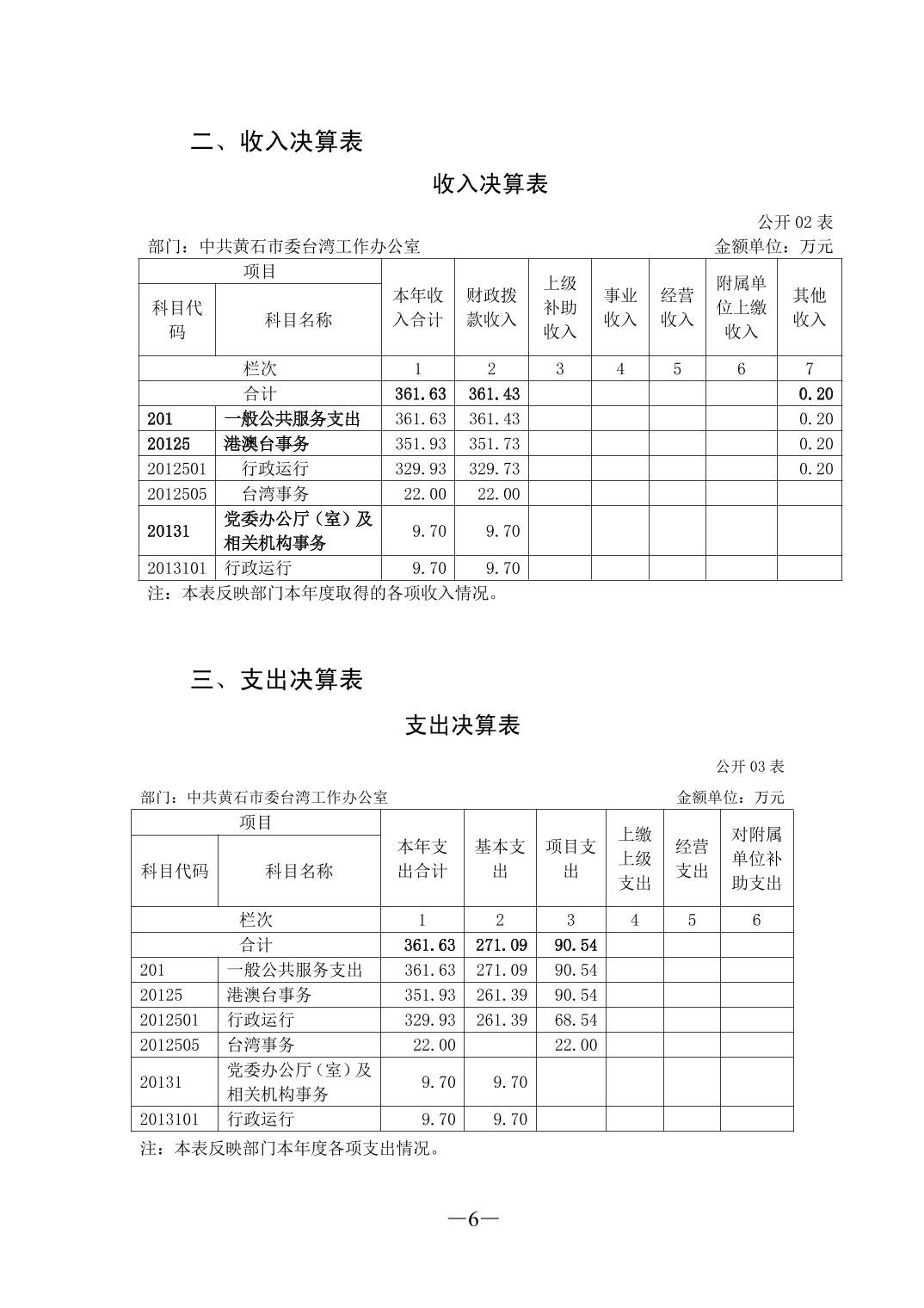2024年度中共黄石市委台湾工作办公室决算公开说明