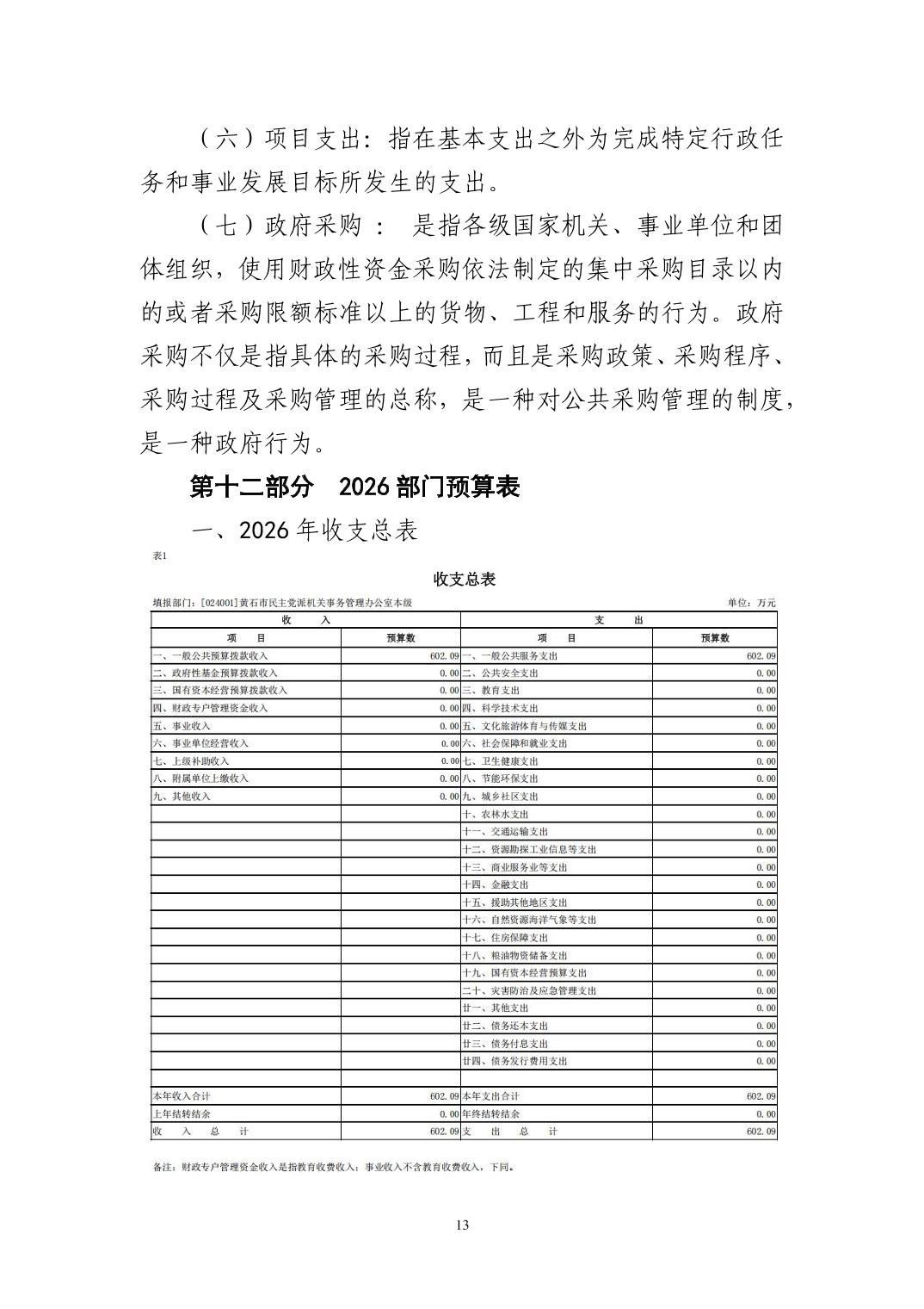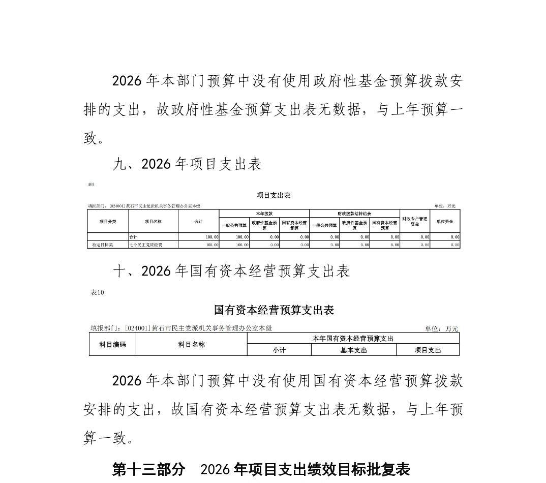 2026年度黄石市民主党派机关事务管理办公室部门预算公开情况说明