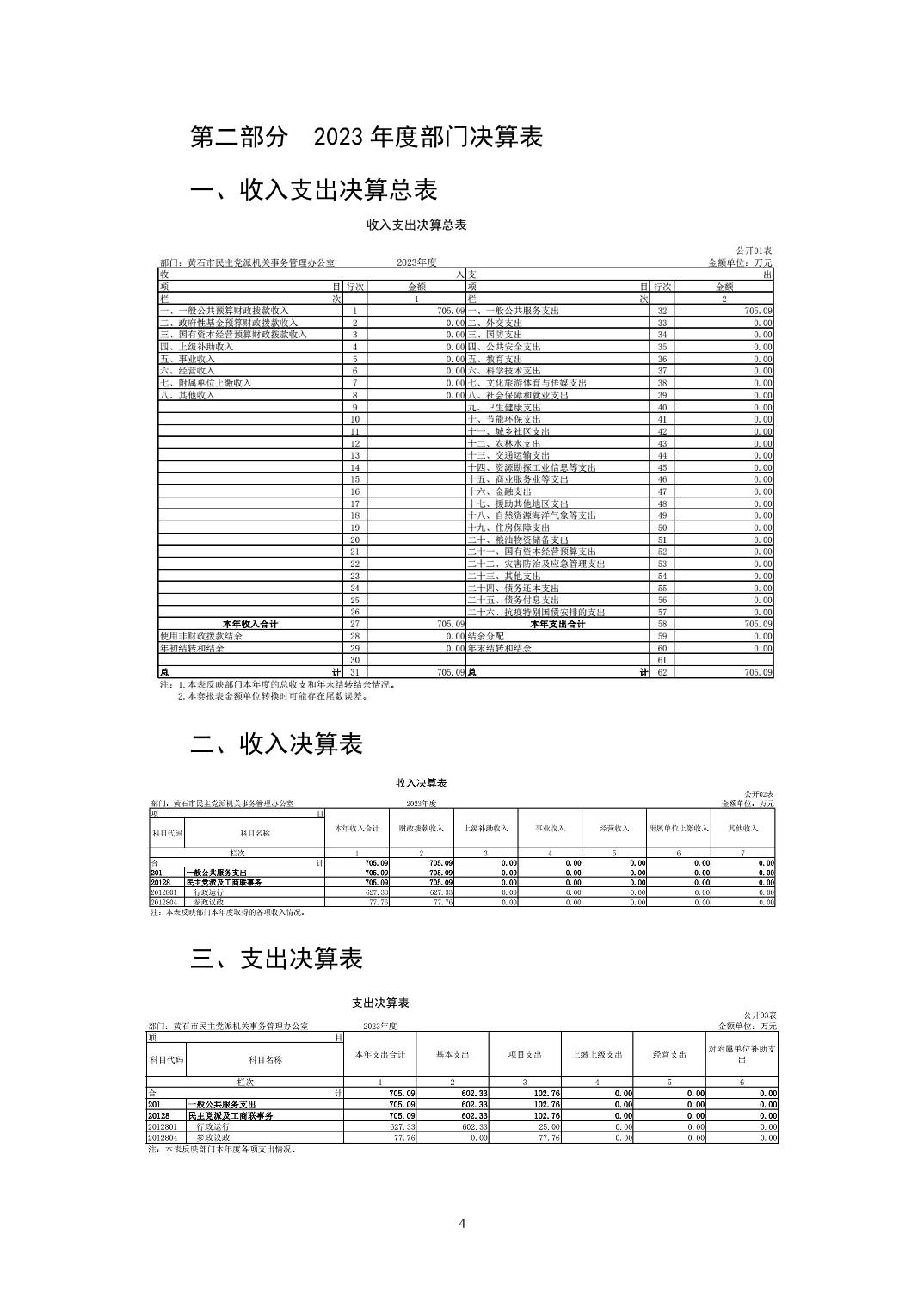 黄石市民主党派机关事务管理办公室 2023年度部门决算