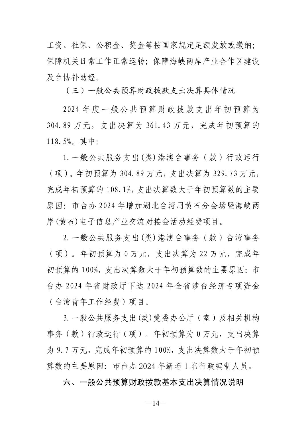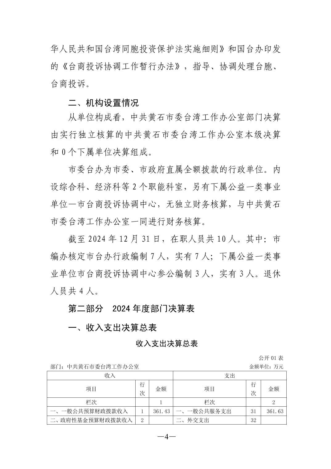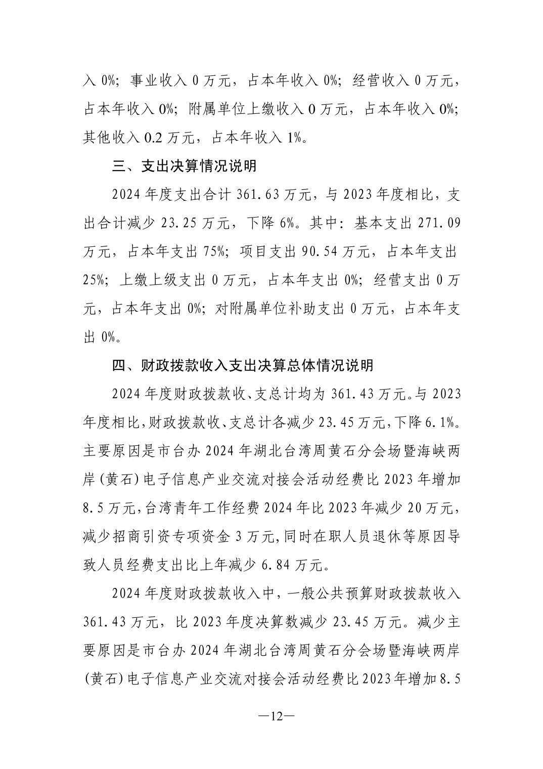 2024年度中共黄石市委台湾工作办公室部门决算公开说明