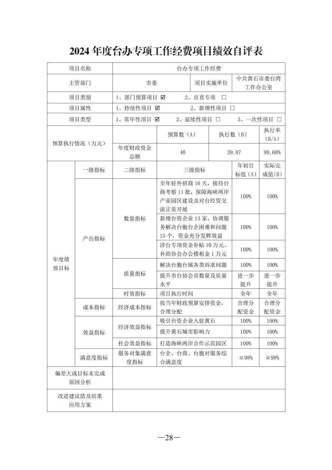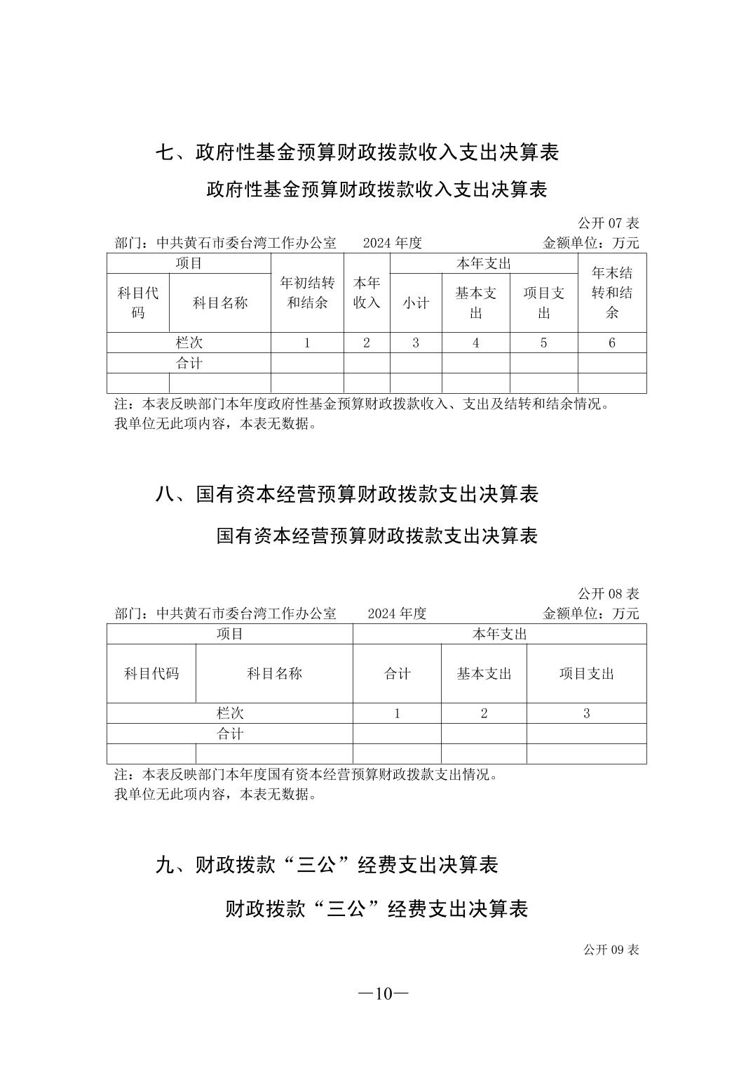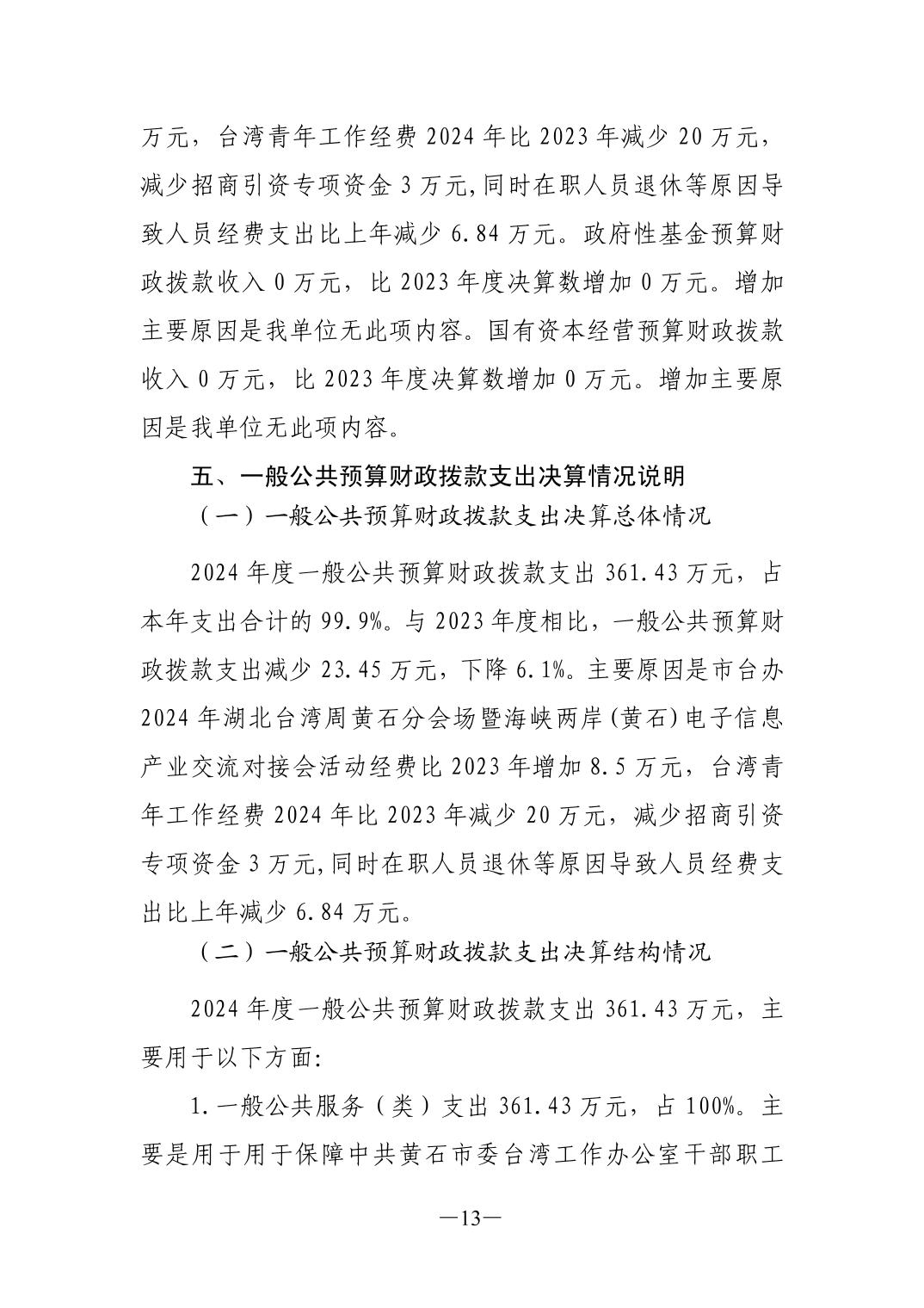 2024年度中共黄石市委台湾工作办公室部门决算公开说明