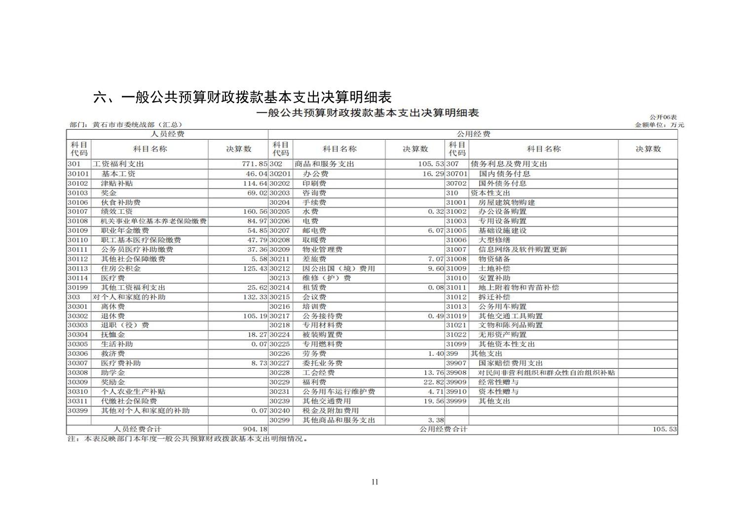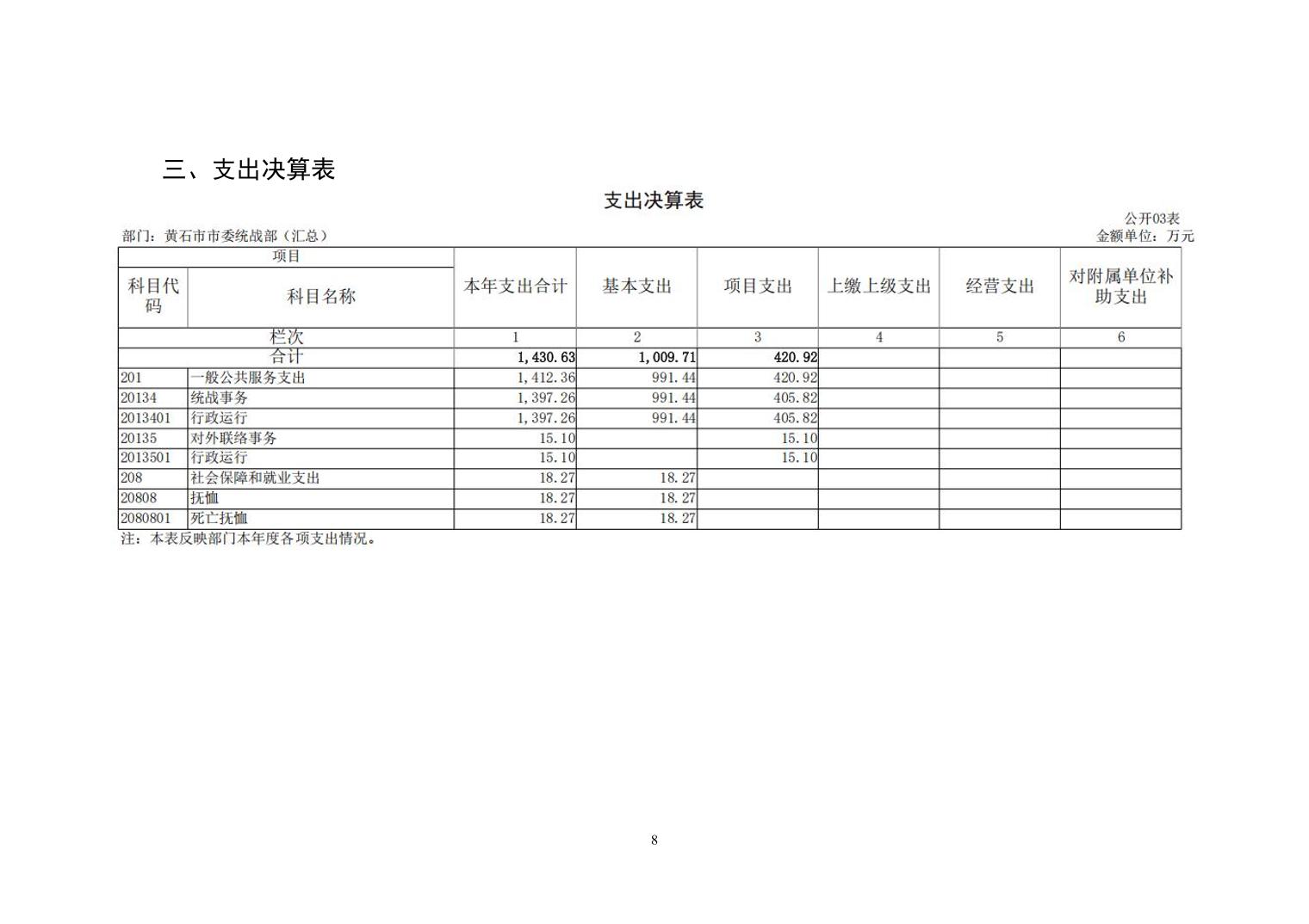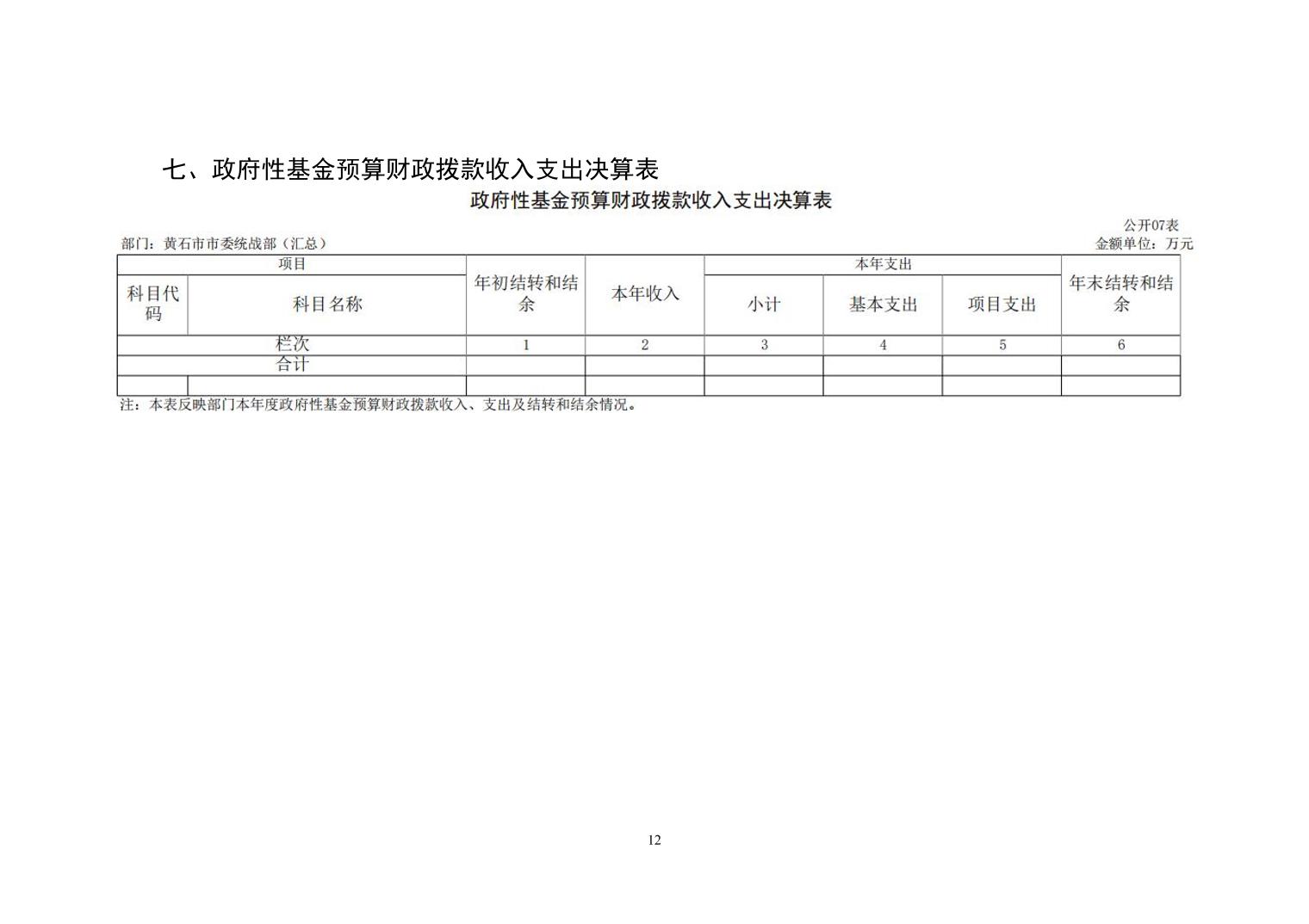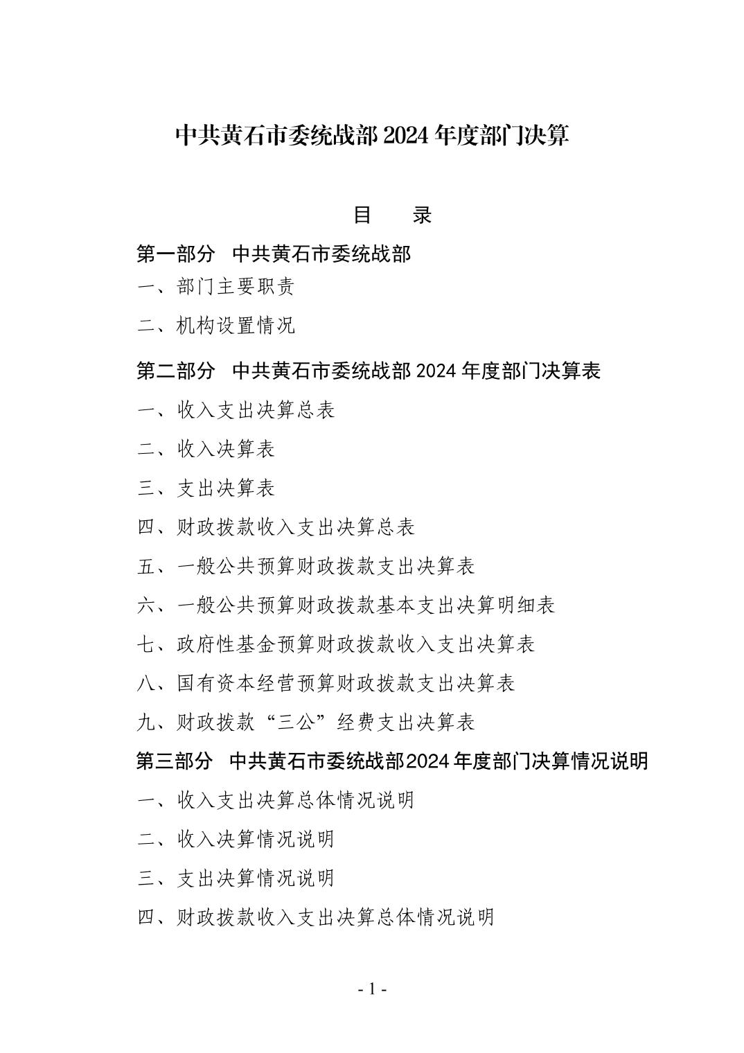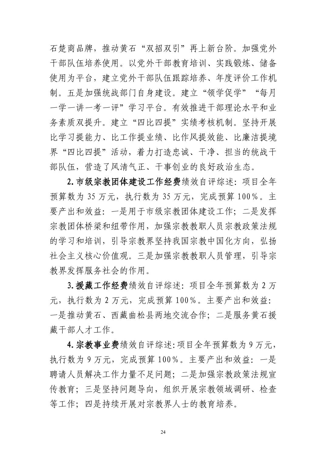 中共黄石市委统战部2024年度部门决算