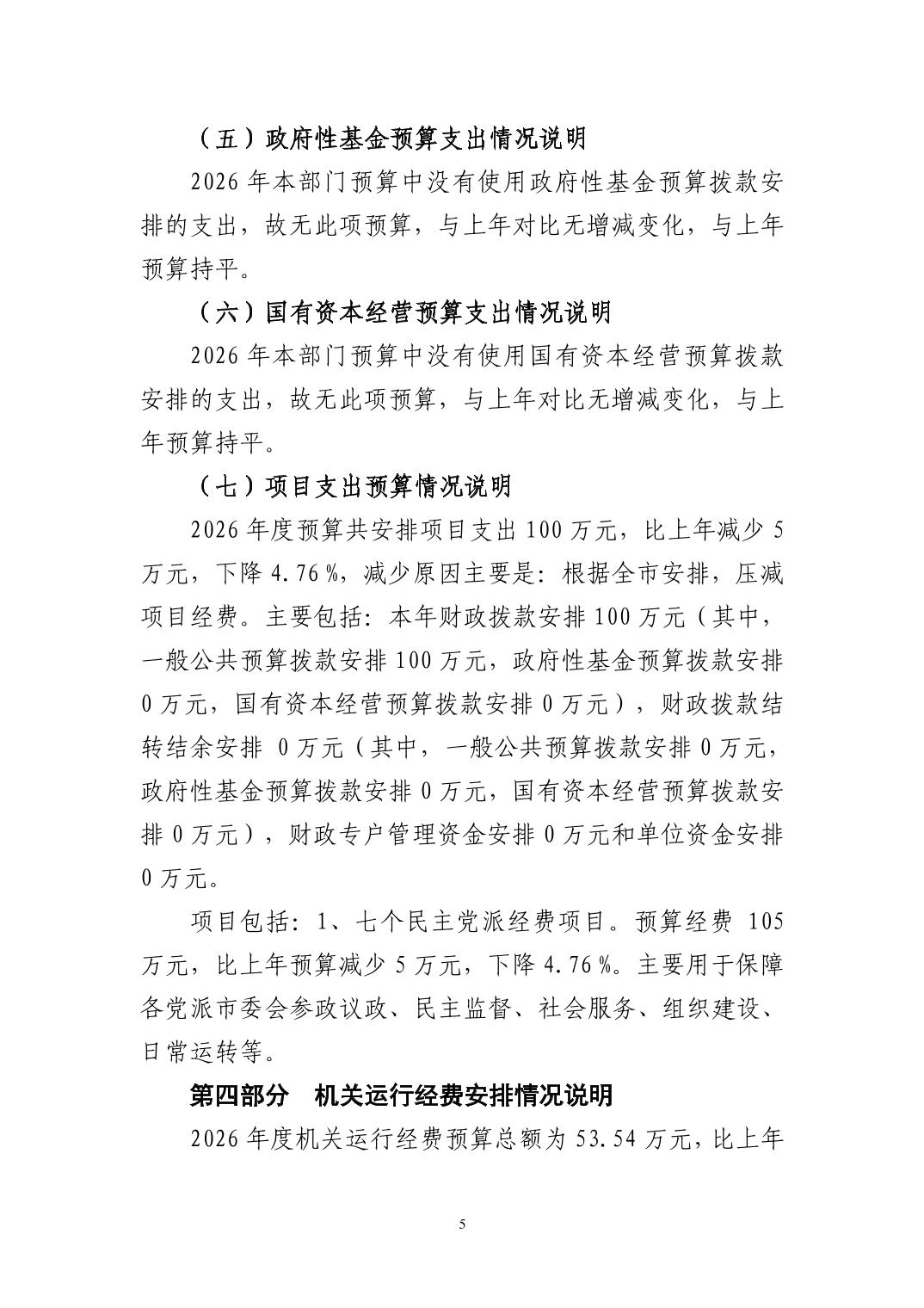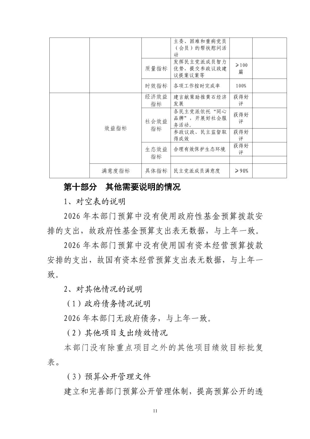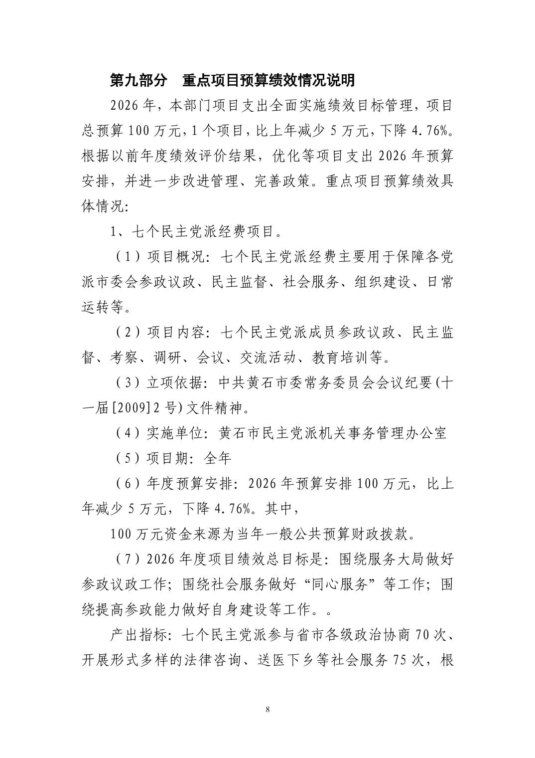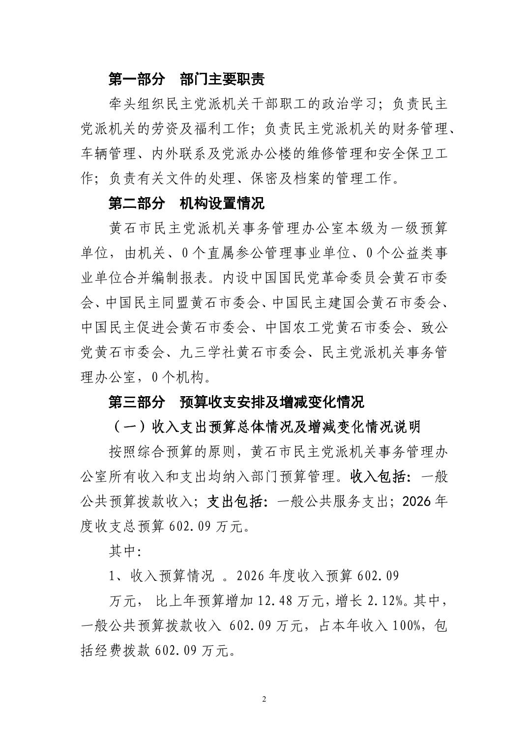 2026年度黄石市民主党派机关事务管理办公室部门预算公开情况说明