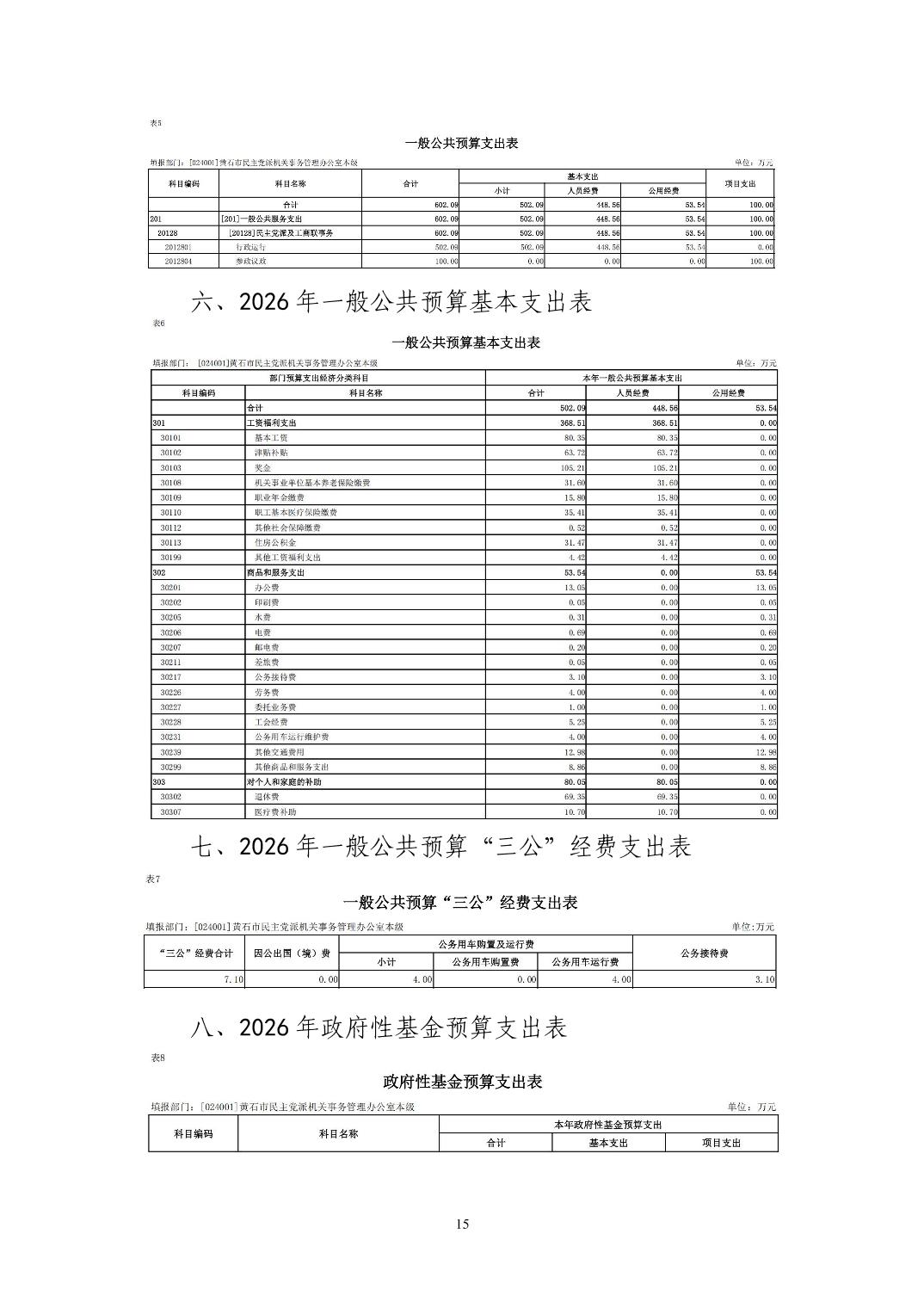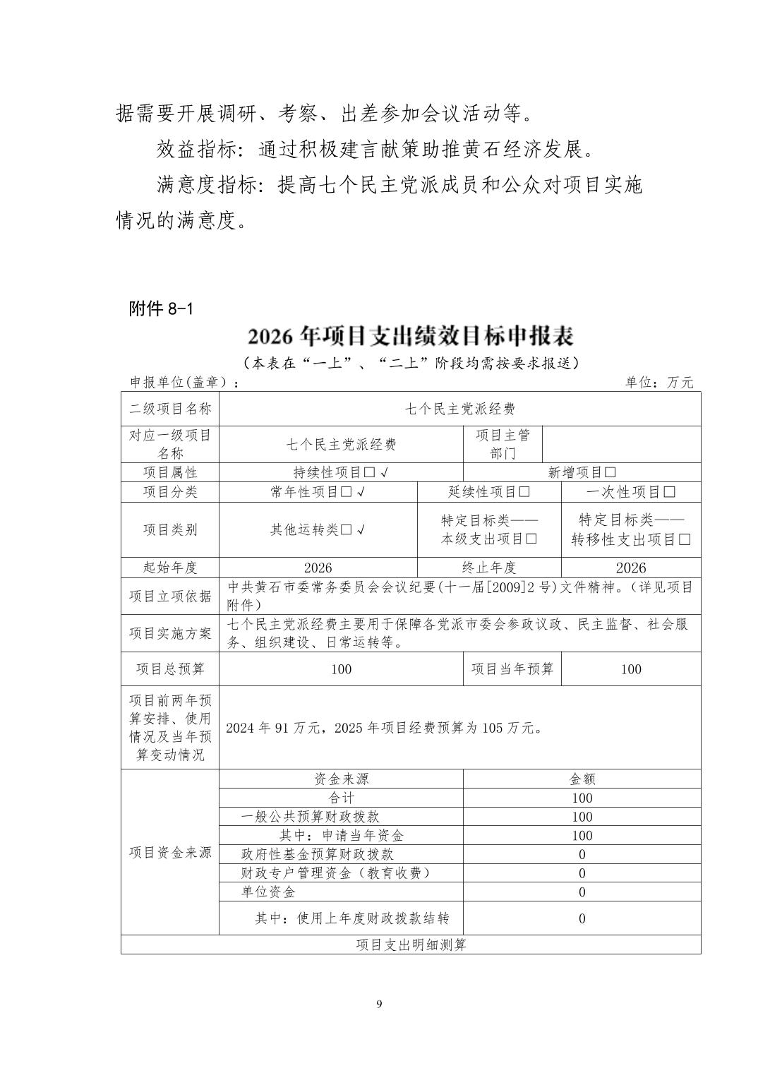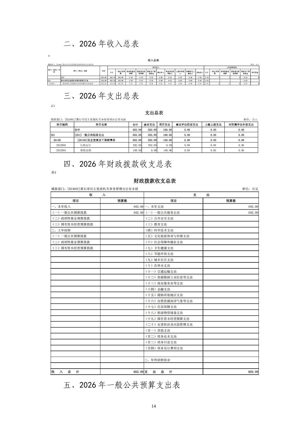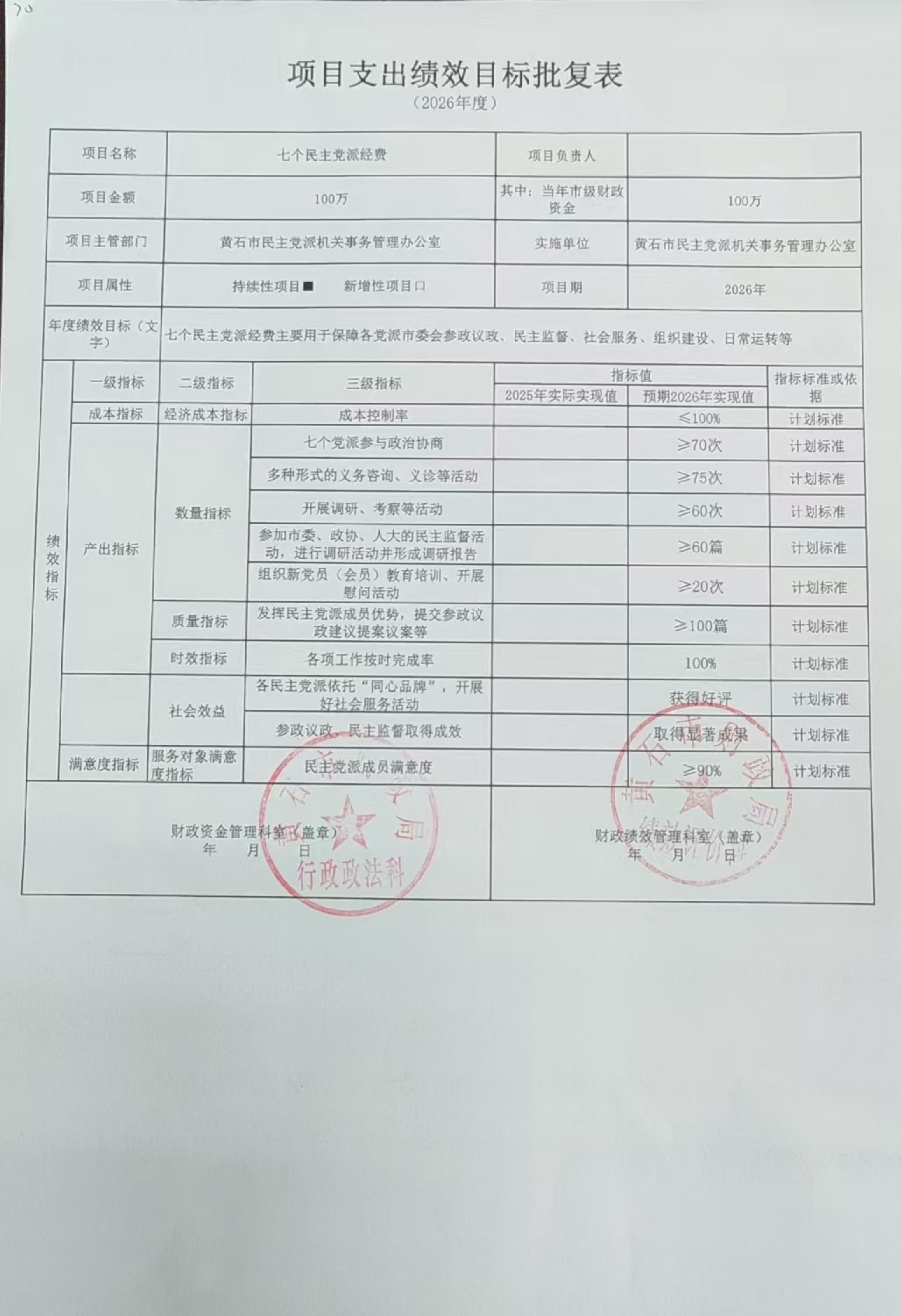 2026年度黄石市民主党派机关事务管理办公室部门预算公开情况说明