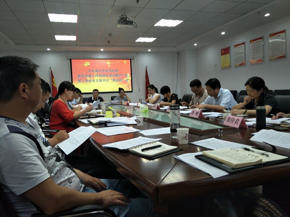 7月26日下午,市委统战部组织在市民宗局召开市直统战系统机关党建工作现场交流会和2017年第二季度党支部书记“微述职”会议。市委统战部班子成员、市直统战系统各单位主要负责人、市委统战部机关党委委员及各党支部委员参加会议。